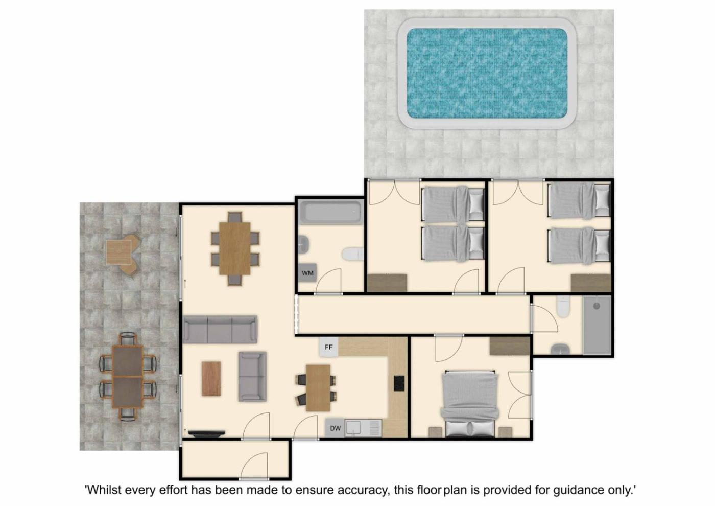 Four-Bedroom Villa. This villas standout feature is the private pool. The air-conditioned villa has 4 bedrooms and 3 bathrooms with a bath and a shower. Guests will find a refrigerator, a dishwasher, an oven and a microwave in the well-fitted kitchen. The villa also features a barbecue. A seating area with a TV, a washing machine and a terrace are offered in this villa. The unit has 6 beds.