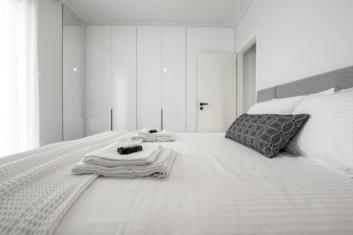 One-Bedroom Apartment. Guests can make meals in the kitchen that features a stovetop, a refrigerator, a dishwasher and kitchenware. This apartment is air-conditioned and has a seating area with a flat-screen TV, a washing machine, a tea and coffee maker, a dining area, as well as a wardrobe. The unit has 2 beds.
