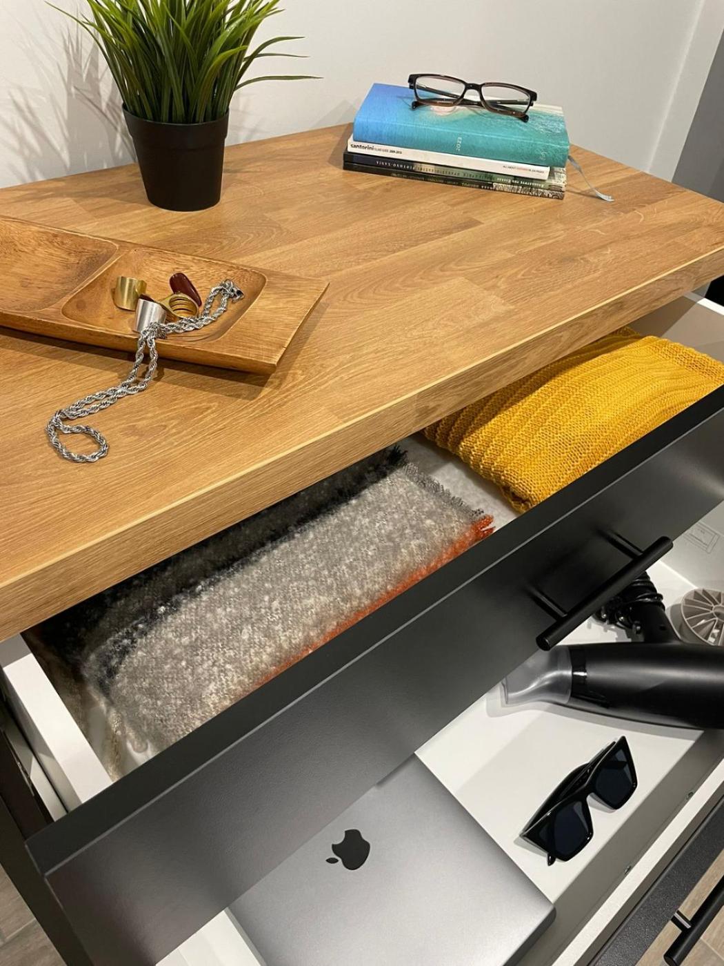 Shared stationery such as printed menus, magazines, pens, and paper removed
