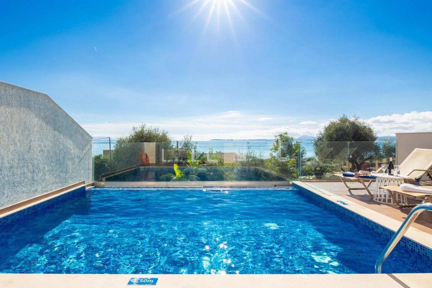 The villa features 2 bedrooms, 3 bathrooms, bed linen, towels, a TV, a dining area, a fully equipped kitchen, and a patio with sea views. The property has an outdoor dining area.
