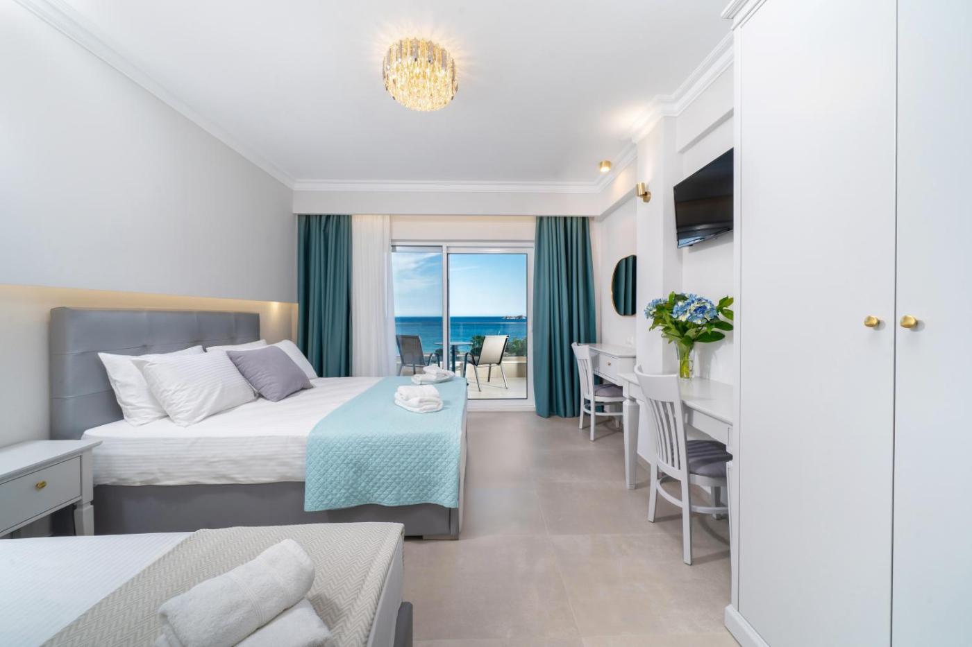 Deluxe Suite with Sea View. Guests will have a special experience as the suite features a infinity pool. The air-conditioned suite features 1 bedroom and 1 bathroom with a walk-in shower and a hairdryer. Guests can make meals in the kitchen that is equipped with a stovetop, a refrigerator, kitchenware and a toaster. Featuring a terrace with sea views, this suite also provides soundproof walls and a flat-screen TV. The unit offers 2 beds. ;
