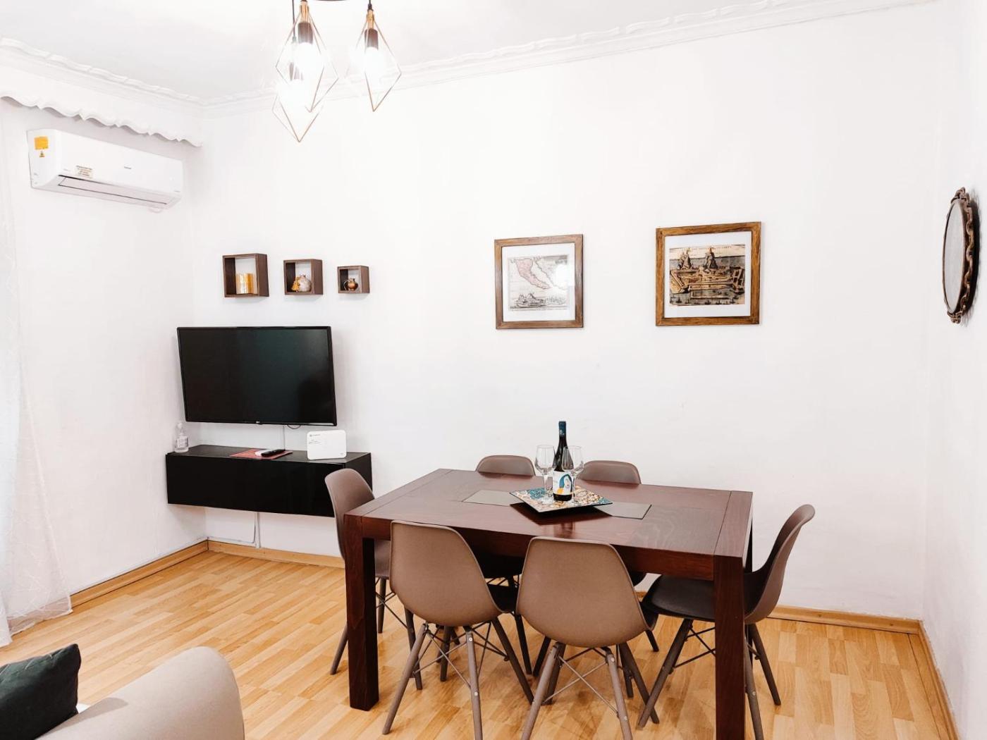 Apartment. This spacious apartment is comprised of 1 living room, 3 separate bedrooms and 1 bathroom with a walk-in shower and free toiletries. Guests can make meals in the kitchen that is fitted with a stovetop, a refrigerator, a dishwasher and kitchenware. This apartment is air-conditioned and features a seating area with a flat-screen TV, a washing machine, a coffee machine, a dining area, as well as a wardrobe. The unit offers 4 beds.