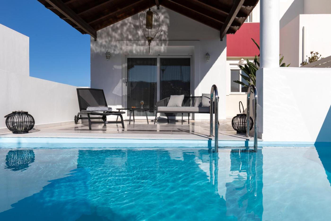 Villa with Private Pool. This villa features a pool with a view. Boasting a private entrance, this air-conditioned villa includes 1 living room, 2 separate bedrooms and 2 bathrooms with a walk-in shower and a hairdryer. In the fully equipped kitchen, guests will find a stovetop, a refrigerator, a dishwasher and kitchenware. Featuring a terrace with garden views, this villa also offers a washing machine and a flat-screen TV with cable channels. The unit has 4 beds.
