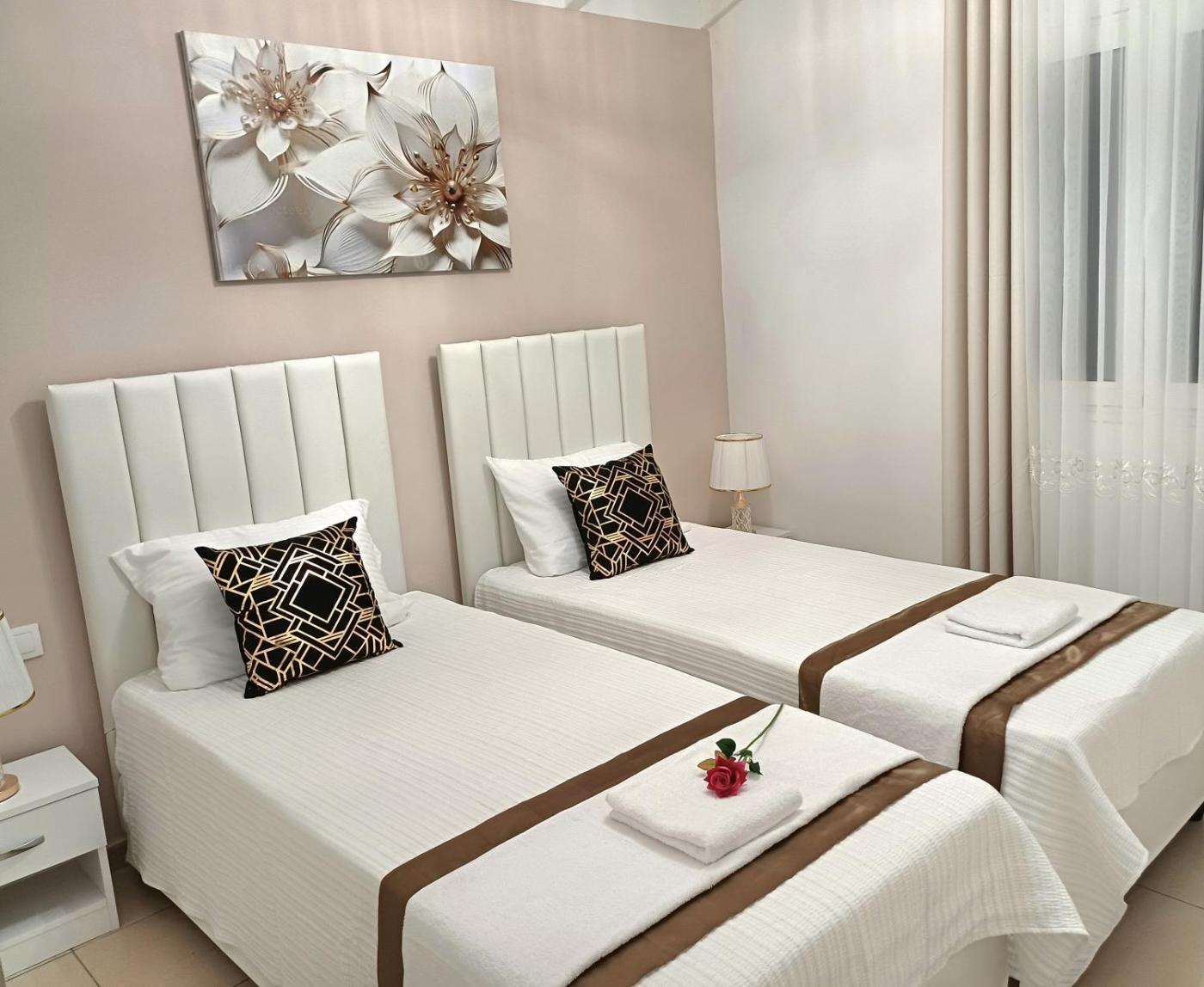 Two-Bedroom Apartment with Sea View. Boasting a private entrance, this air-conditioned apartment comes with 1 living room, 2 separate bedrooms and 1 bathroom with a bath and a shower. Guests can make meals in the kitchen that features a stovetop, a refrigerator, kitchenware and an oven. The spacious apartment features a washing machine, a seating area, a dining area, a flat-screen TV, as well as sea views. The unit has 3 beds.