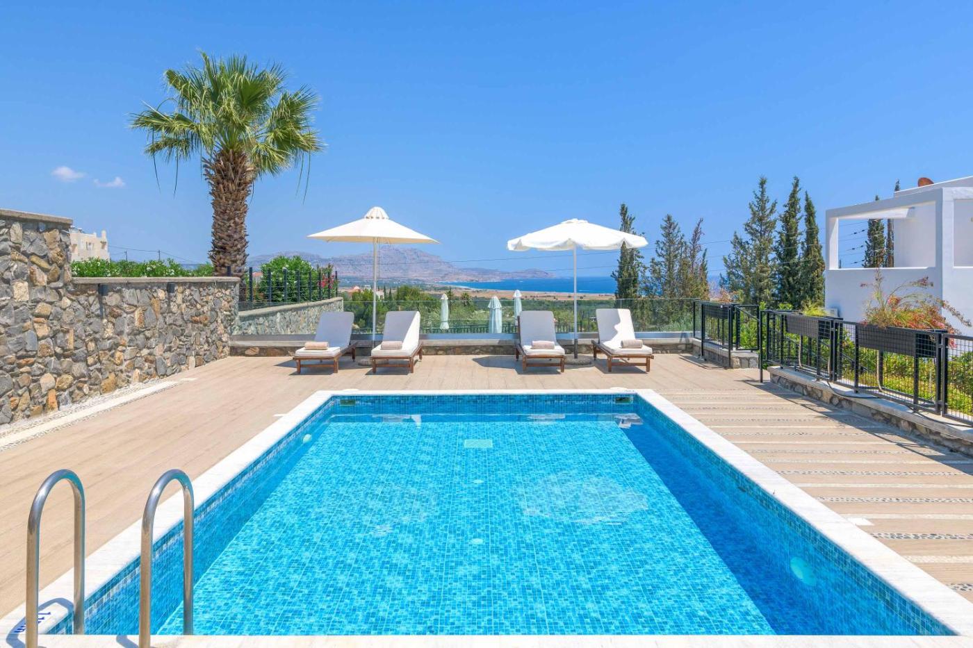Three-Bedroom Villa. Guests will have a special experience as the villa features a pool with a view. The air-conditioned villa features 3 bedrooms and 2 bathrooms with a bath and a shower. Guests will find a refrigerator, a dishwasher, kitchenware and an oven in the fully equipped kitchen. The villa also offers a barbecue. Featuring a terrace with sea views, this villa also provides a washing machine and a TV. The unit offers 4 beds.