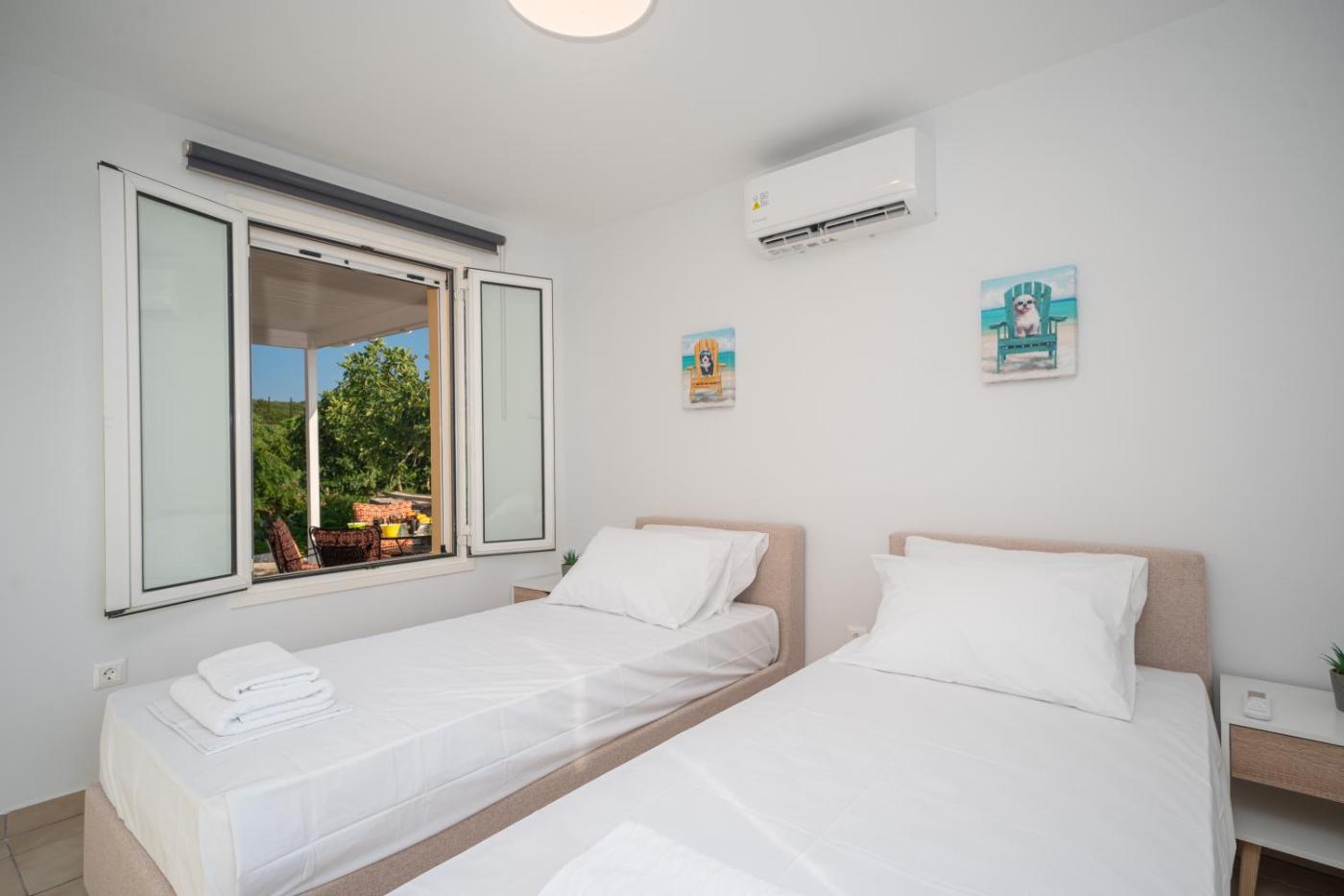 Two-Bedroom House. This holiday homes special feature is the fireplace. Meals can be prepared in the kitchen, which has a stovetop, a refrigerator, a dishwasher and an oven. The air-conditioned holiday home offers a flat-screen TV, a washing machine, a tea and coffee maker, a dining area as well as sea views. The unit has 3 beds.