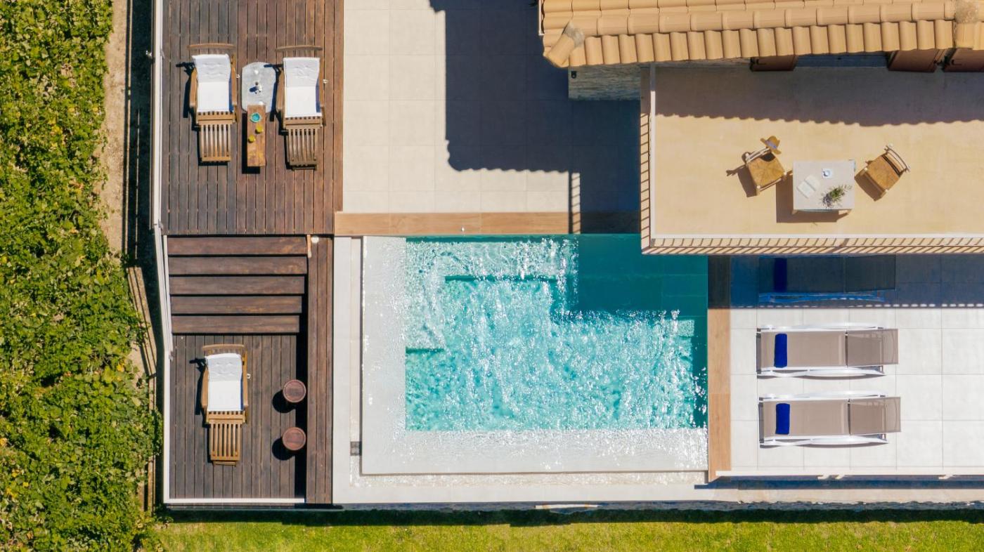 Villa with Sea View. This villas special features are the hot tub and the fireplace. Featuring a private entrance, this air-conditioned villa comprises 1 living room, 3 separate bedrooms and 2 bathrooms with a walk-in shower and a hairdryer. Guests will find a stovetop, a refrigerator, a dishwasher and kitchenware in the well-fitted kitchen. The villa also provides guests with a barbecue. Boasting a terrace with sea views, this villa also provides a washing machine and a flat-screen TV with streaming services. The unit offers 5 beds.