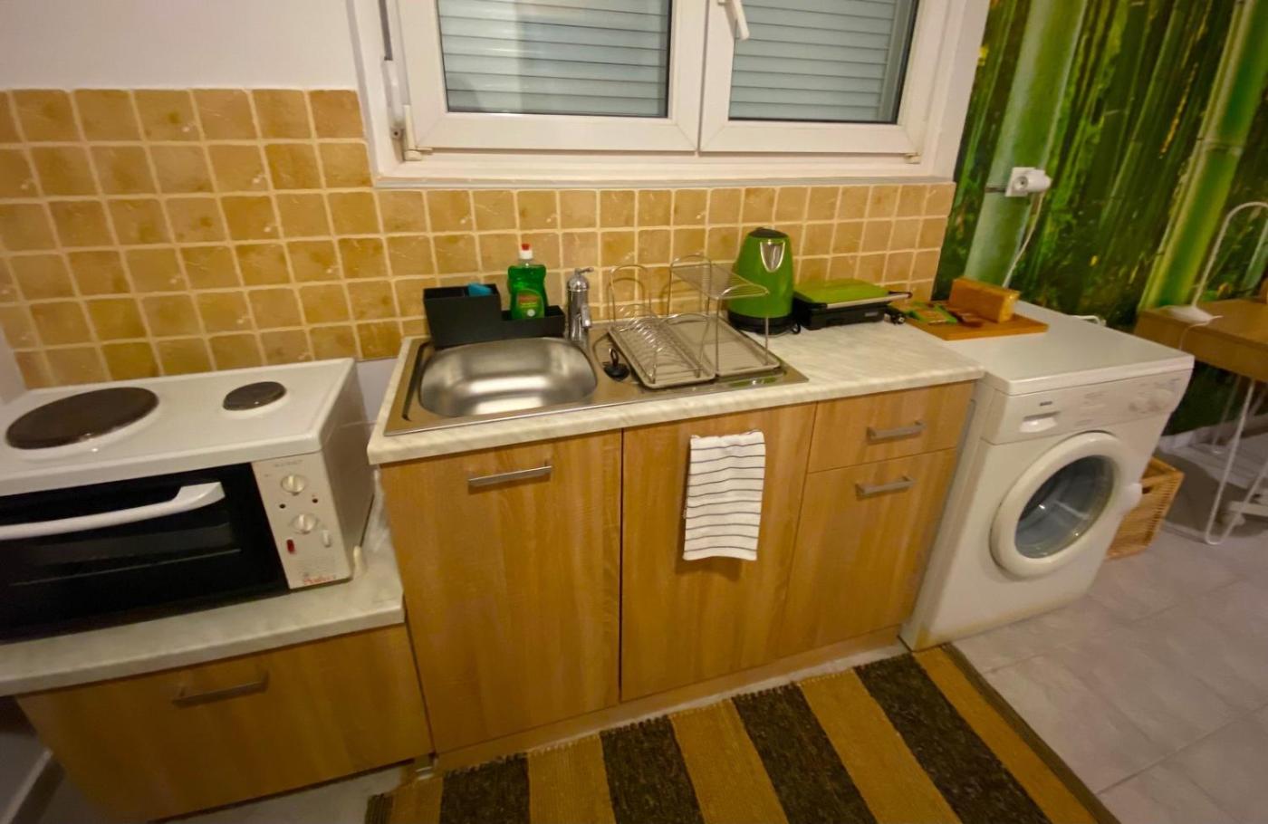 Studio Apartment. Featuring a private entrance, this apartment comprises a kitchen, 1 bedroom and 1 bathroom with a bath and a hairdryer. The well-equipped kitchen features a stovetop, a refrigerator, kitchenware and an oven. This apartment has a washing machine, a tea and coffee maker, flat-screen TV, as well as chocolate for guests. The unit offers 2 beds. ;