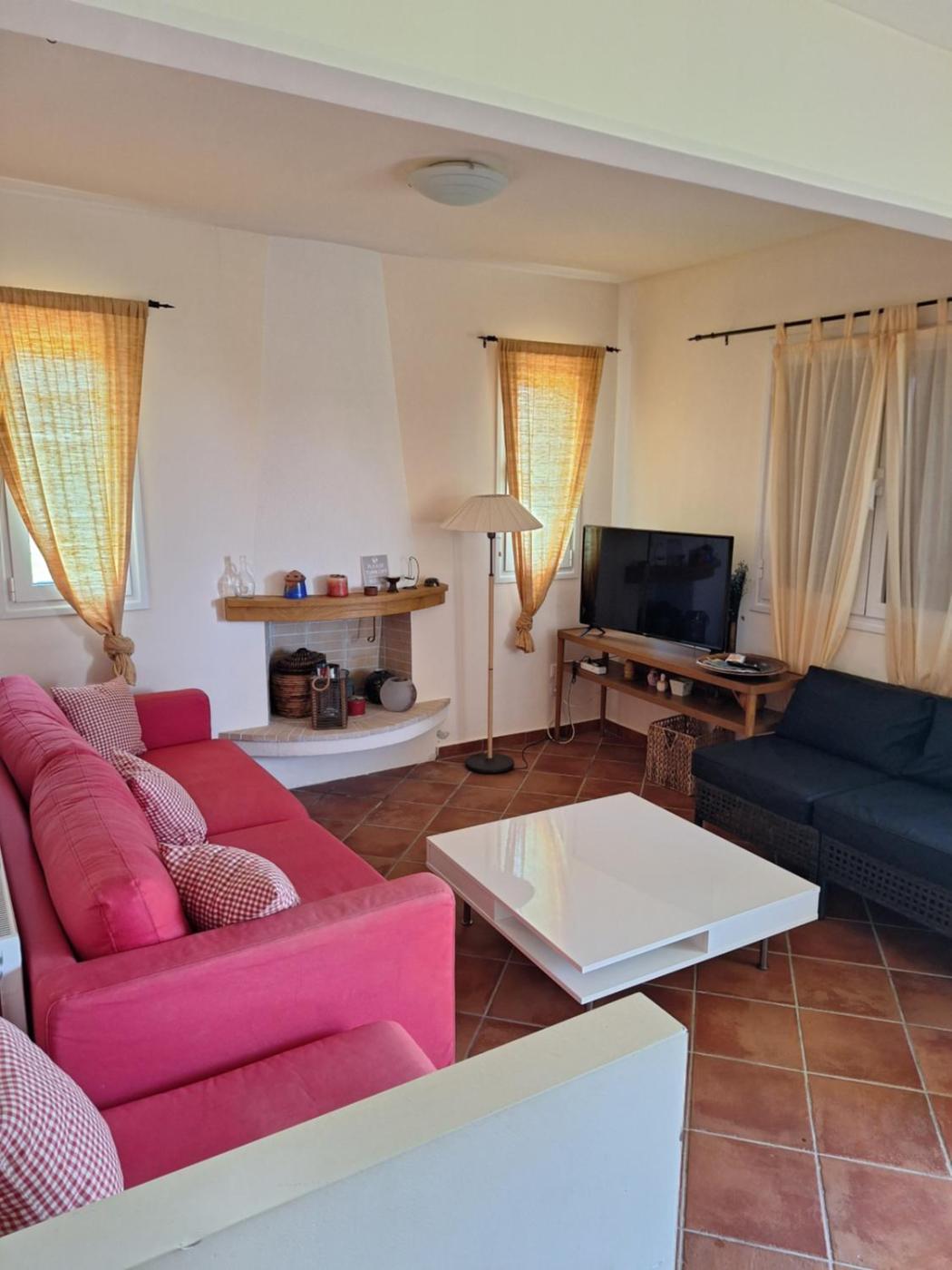 Three-Bedroom House. The fireplace is a top feature of this holiday home. Boasting a private entrance, this air-conditioned holiday home comes with 1 living room, 3 separate bedrooms and 3 bathrooms with a shower and a hairdryer. In the fully equipped kitchen, guests will find a stovetop, a refrigerator, a dishwasher and kitchenware. Featuring a terrace with sea views, this holiday home also features a washing machine and a flat-screen TV with streaming services. The unit has 4 beds.