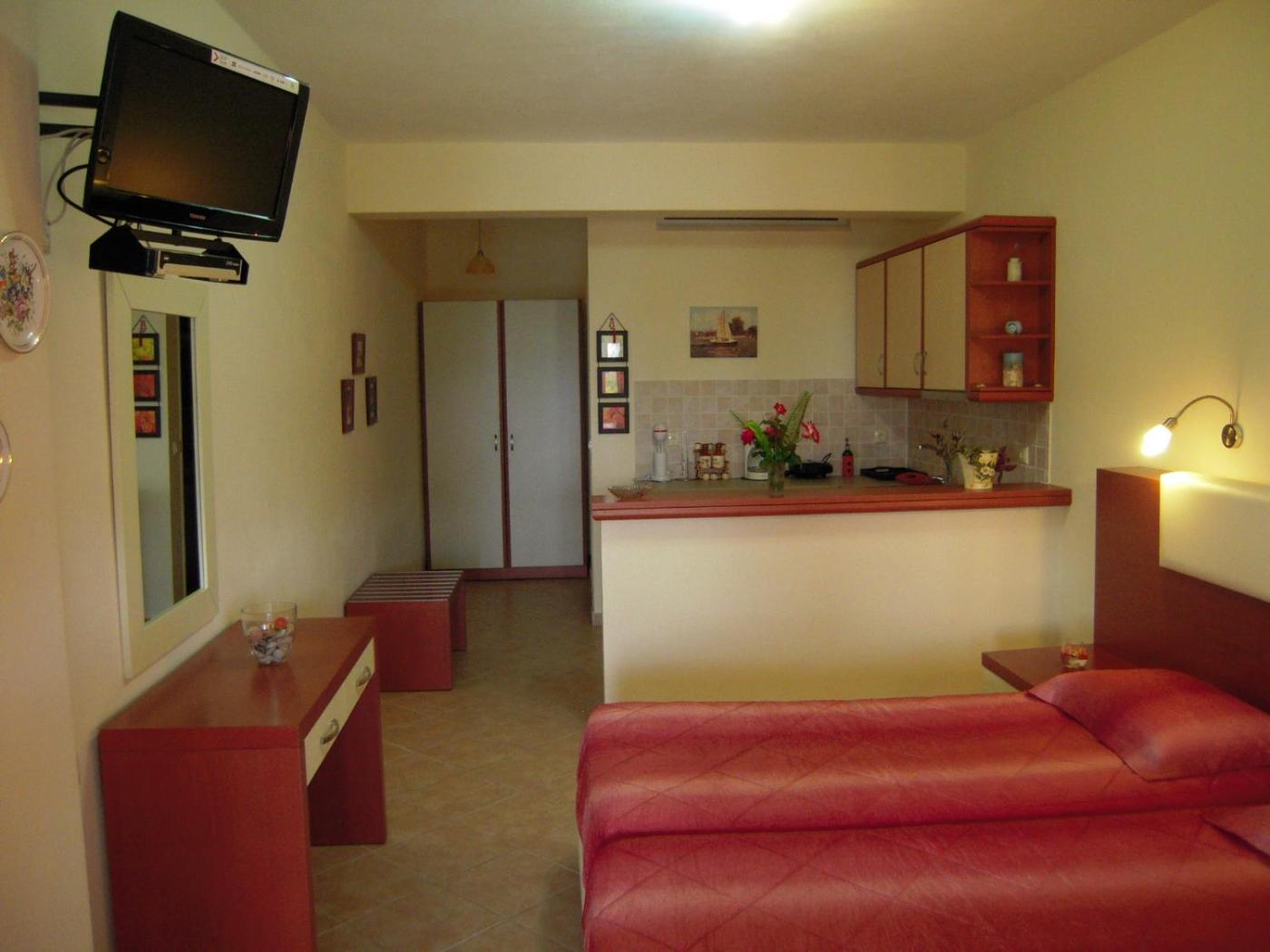 Studio (2 Adults). 20 metres from the beach this air-conditioned studio offers free Wi-Fi and a private balcony overlooking the Ionian Sea or the rear garden with olive trees (depending on availability). A kitchenette with fridge, coffee maker and cooking facilities is included. ;