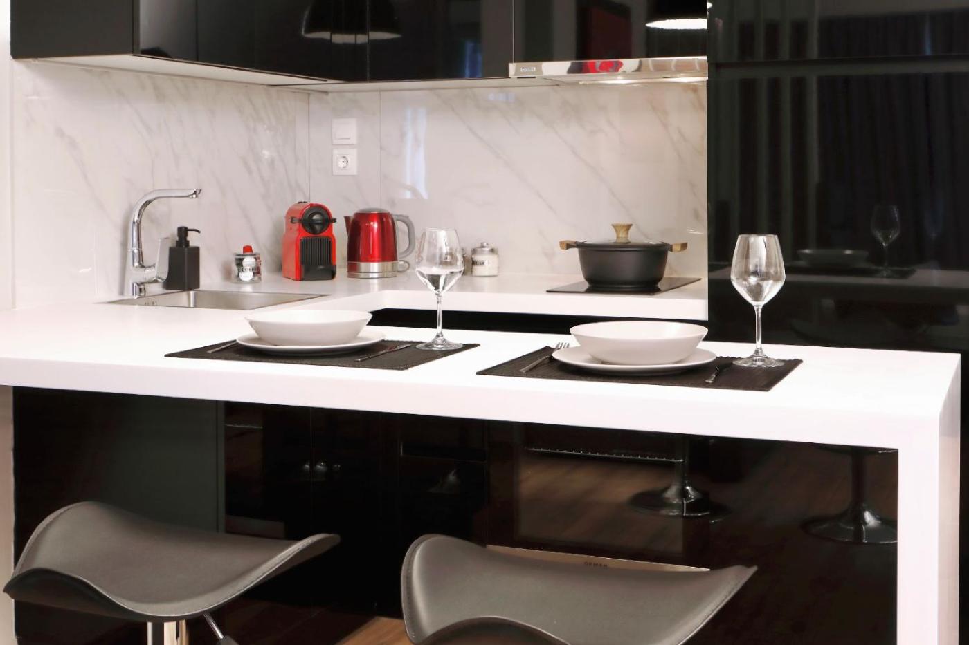 Superior Suite. The air-conditioned suite features 1 bedroom and 1 bathroom with a shower and a hairdryer. In the kitchen, guests will find a stovetop, a refrigerator, kitchenware and an oven. The suite has parquet floors, a seating area with a flat-screen TV, soundproof walls, a coffee machine as well as city views. The unit offers 1 bed. ;