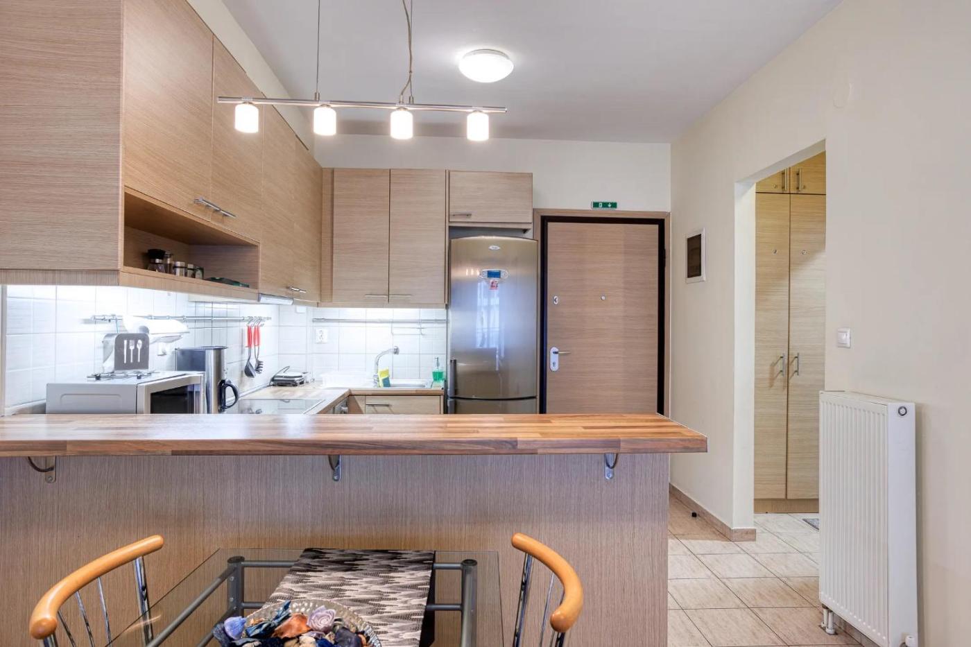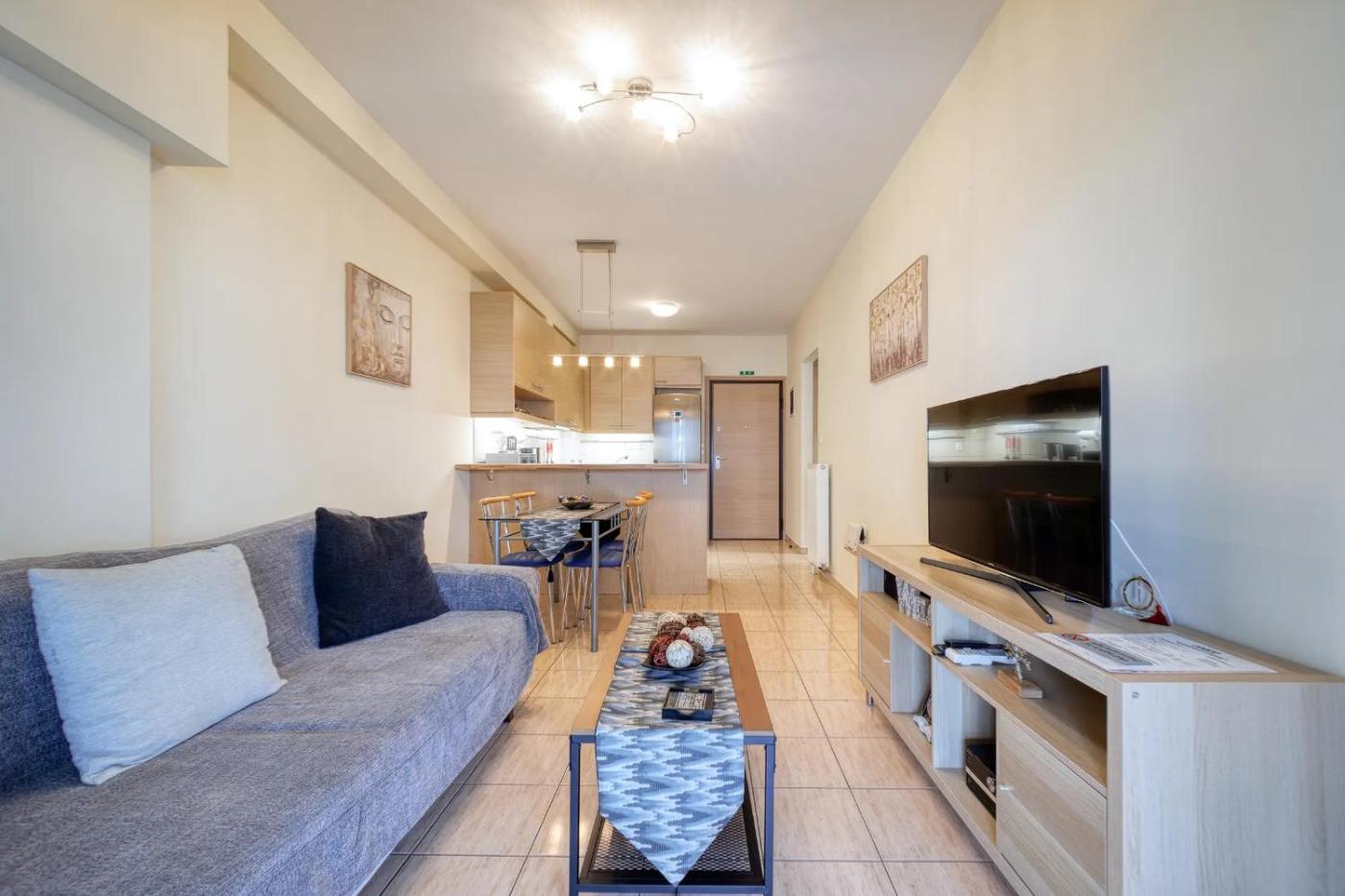 One-Bedroom Apartment. This air-conditioned apartment includes 1 living room, 1 separate bedroom and 1 bathroom with a shower. In the fully equipped kitchen, guests will find a stovetop, a refrigerator, kitchenware and an oven. Boasting a terrace, this apartment also offers a washing machine, a tea and coffee maker and a flat-screen TV. The unit has 2 beds.